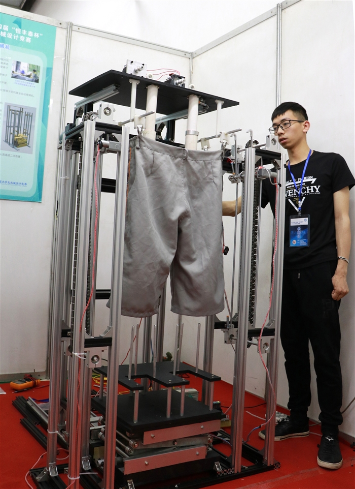 作品《全自动穿裤机》,参赛团队:徐永龙、陈湘、蒋金庭、施常杰、李洛锴同学,指导老师:邵志达、胡新;