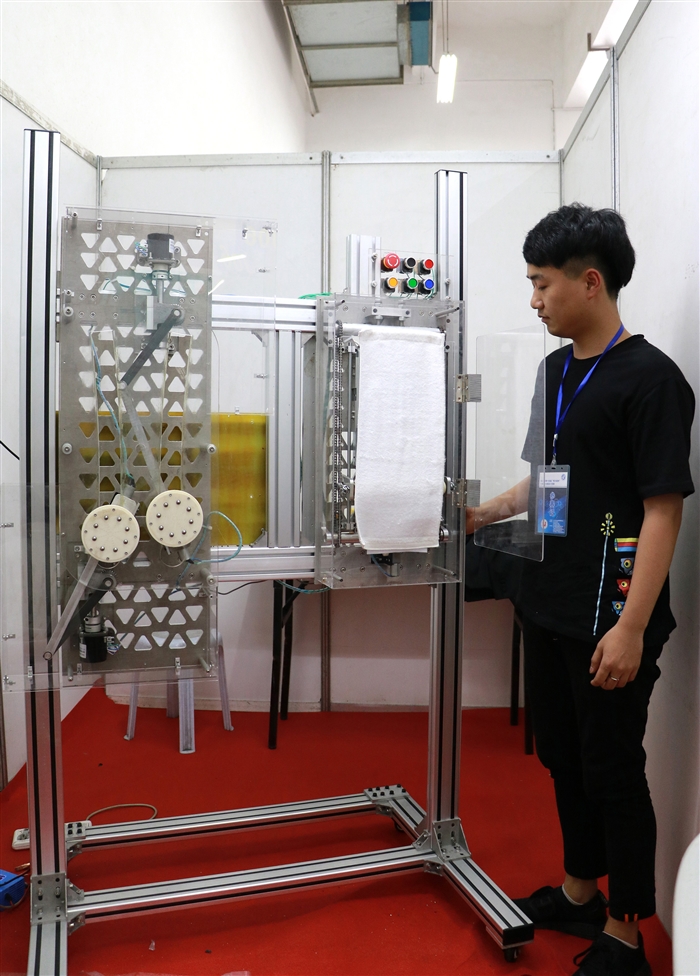 本届赛事共有省内49所高校的337件作品参赛,经过通过实物评审、理论方案评审、现场答辩等3个环节,最后根据综合评分评选出获奖者。共评选出专科组一等奖6项、二等奖10项、三等奖17项。