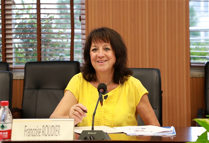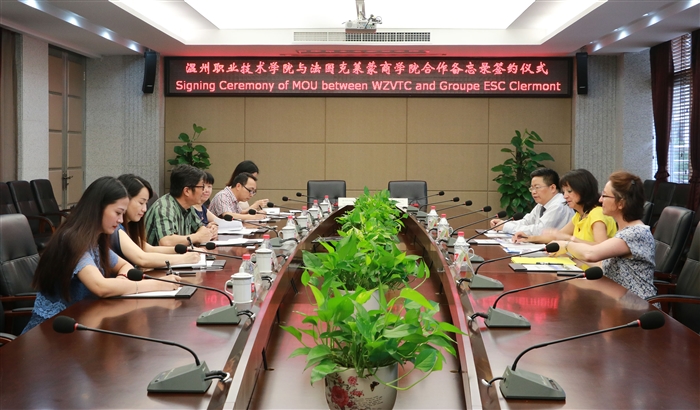 本网讯 6月13日,法国克莱蒙商学院校长罗迪雅女士(Francoise ROUDIER)一行三人来我院洽谈交流合作办学事宜,副院长何忠在研创楼6楼接待了来宾。