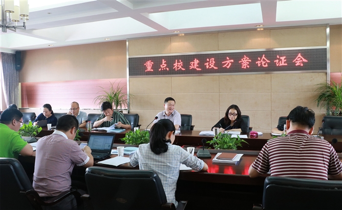 本网讯 (党院办通讯员 范怡瑜)为更好地推进省高职重点校建设,6月19日下午,学院举行浙江省高职重点校建设方案论证会。谢志远院长主持会议,副院长王向红、何忠、王志梅,党委委员蔡后界,省高职重点校建设项目组负责人及各系主任参加了论证会。
