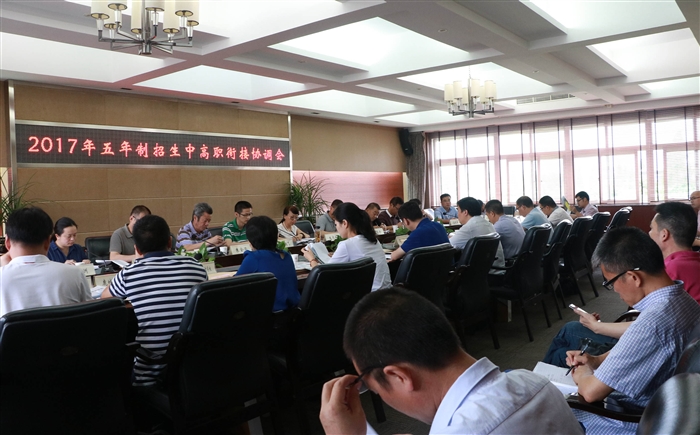 本网讯 为进一步搭建职业教育立交桥,推进中高职衔接,6月20日,2017年五年制招生中高职衔接协调会在学院正德楼三楼会议室召开。王志梅副院长主持会议,教务处、招生就业处、学报编辑部负责人,相关合作的系主任,成教学院、瑞安学院负责人,14所合作的中职学校领导、教务主任等参加会议。