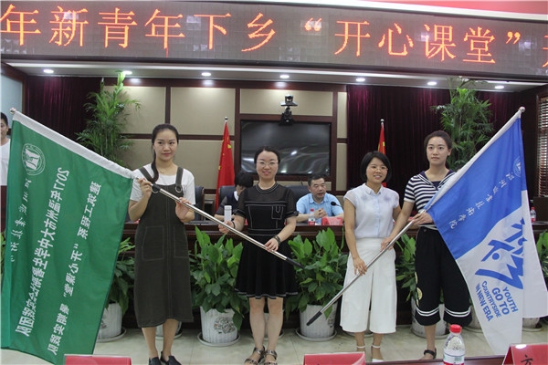 仪式最后,苍南团县委书记陈娟娟与我院团委副书记徐蓉共同为实践队授旗。学院心理健康教育中心主任薛小莲还为全体实践队员上了一场实践前心理辅导课。