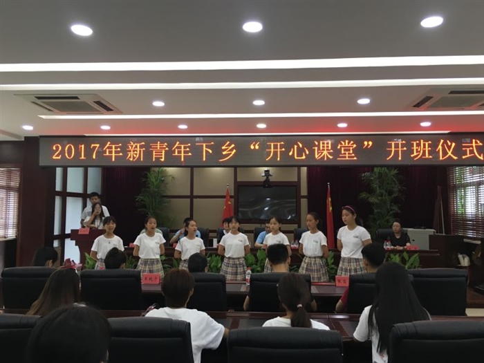 本网讯(通讯员 包邦胜、叶丰)2017年7月5日,学院“新青年下乡”活动之“开心课堂”项目在苍南县钱库镇人民政府会议室隆重举行暑期开班启动仪式。学院党委委员、纪委书记徐利群,苍南团县委书记陈娟娟、钱库镇党委副书记薛如意,我院团委和建筑工程系相关负责人参加此次开班仪式。