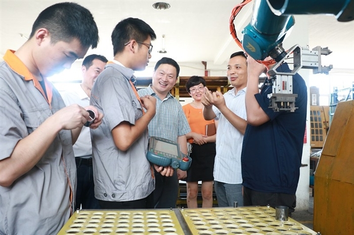 7月6日,学院院长谢志远一行前往温州市华推机械有限公司,看望慰问了机械工程系下企业锻炼教师和暑期社会实践队队员。谢志远深入了解师生实践情况和实践收获,并与温州市华推机械有限公司总经理林蒙进行了深入交流。林蒙对我院办学实力、师资力量和学生专业技能给予了高度评价,对我院多年来提供的人才支撑和技术支持表达了谢意,对进一步深化校企合作提出殷切期望。谢志远为企业提供在校生良好学习平台和成长平台表示感谢。谢志远指出,温州市华推机械有限公司与温职院已形成了密切的合作关系,温职院将一如既往地为企业转型升级提供智力支持。