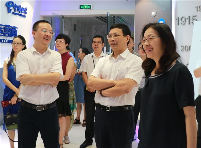 王靖高一行先后参观了智慧城市体验馆的各个展台。该体验馆以互联网智慧为核心,共划分为电信形象展示区、智慧能力、智慧政务、智慧新业态、智能制造、智慧教育、信息化惠民、智慧出行、智慧养老、智慧家庭、智慧尾厅11大区域,通过实物呈现、场景模拟、高科技影像等形式,向参观者集中展示了温州市智慧城市的发展历程、云计算、智慧交通、大数据分析、智慧家庭等多个板块,现场演示了移动云计算中心、智慧政务、智慧教育、智慧交通等板块在实际生产生活中的应用,面向公众提供未来工作、家庭、出行、休闲等方面信息化高端业务。