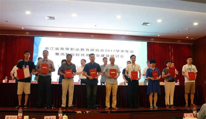 本网讯 8月20日至21日,由浙江省高等职业教育研究会主办、温州职业技术学院承办的浙江省高等职业教育研究会2017年学术年会暨高职院校优势专业建设研讨会在温州顺利召开。浙江省高等职业教育研究会理事长、浙江金融职业学院党委书记周建松,浙江省财政厅教科文处副处长虞劲松,我院党委书记王靖高、院长谢志远,浙江省高等职业教育研究会副理事长、湖州职业技术学院原院长胡世明,浙江省高等职业教育研究会副理事长、丽水职业技术学院原院长汪建云及来自全省49所高职高专院校的300余名代表出席了会议。