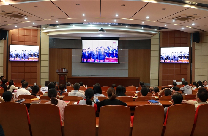 本网讯 2017年10月18日上午9:00,中国共产党第十九次全国代表大会在人民大会堂开幕,习近平总书记代表第十八届中央委员会向大会作了题为《决胜全面建成小康社会 夺取新时代中国特色社会主义伟大胜利》的报告。学院党委高度重视,周密部署,细致安排,组织党政领导班子、广大师生员工收看大会开幕会直播。