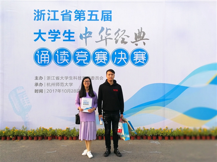 我院工商管理系国际商务专业学生韩智校同学热爱朗诵与演讲,曾在我院校园主持人大赛、温州市高校联合诗歌朗诵大赛等多项赛事中获得荣誉。在工商管理系教师韩莉的指导下,韩智校同学利用课余时间背诵经典、练习演讲、认真备战。同时,工商管理系在决赛前多次组织模拟演练,指导学生改进提高。经过多方面的努力,韩智校在省赛决赛中出色发挥,斩获佳绩。
