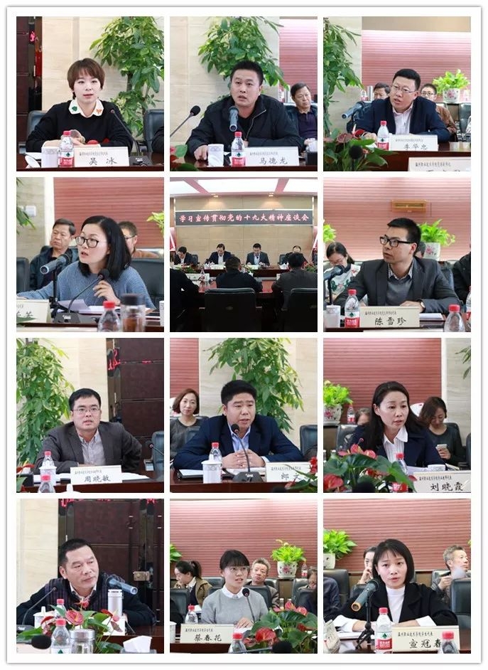 座谈会上,我院党总支书记代表吴冰、马德龙,思政课教师李华忠,党支部书记代表张芳芳、陈雪珍,专业教师代表周晓敏、郎文昌、刘晓霞,民主党派代表申屠新飞,学生代表蔡春花、宣冠春等11位师生结合自身学习、工作实际谈学习心得、谈实践体会、谈决心打算。大家一致表示,要紧密团结在以习近平同志为核心的党中央周围,高举习近平新时代中国特色社会主义思想伟大旗帜,认真学习宣传贯彻党的十九大精神,锐意进取、奋发有为,为决胜全面建成小康社会、夺取新时代中国特色社会主义伟大胜利奉献自己的力量。