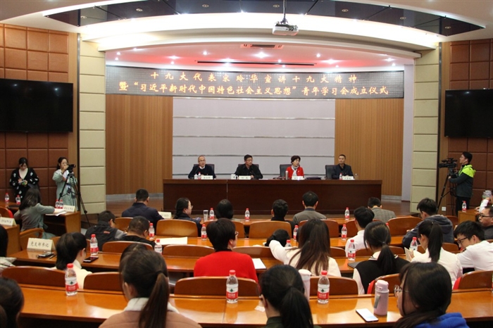 会上举行了“习近平新时代中国特色社会主义思想”青年学习会授牌和学习会指导教师聘任两项仪式,何忠向青年学习会会长授牌,并向青年学习会校外指导教师宋玲华和四位校内指导教师分别授予指导教师聘书。