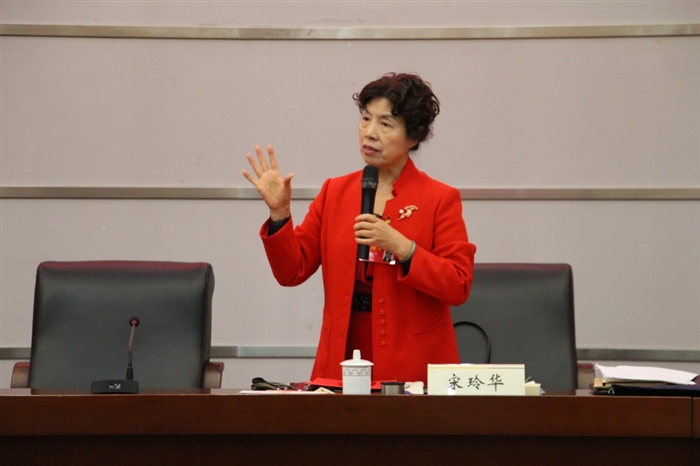 宋玲华以“不忘初心 继续前进”为题,从自己参加党的十九大会议经过开始讲起,向与会青年介绍了参加十九大会议的所见所闻所悟,全面解读了十九大报告精神,并结合自身的公益事业,指导青年师生学习和践行十九大精神。宋玲华号召青年师生,青年兴则国家兴 青年强则国家强,广大青年要时刻牢记习近平总书记殷切希望,深入领会习近平新时代中国特色社会主义思想,坚决维护以习近平同志为核心的党中央权威,志存高远,脚踏实地,勇作时代的弄潮儿。