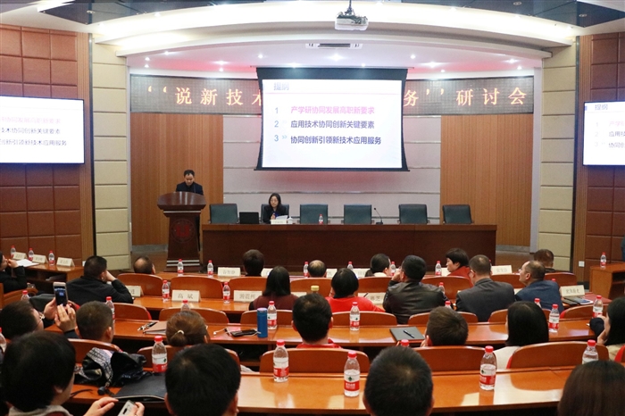(科技开发处通讯员 纪忠宝)为更好地推进我院新技术应用研发服务能力,2017年11月29日在罗山厅召开“说新技术应用研发服务”研讨会。王向红副院长,各系部、二级学院负责人和各科研机构负责人参加了此次论坛。论坛由科技开发处副处长高斌主持。