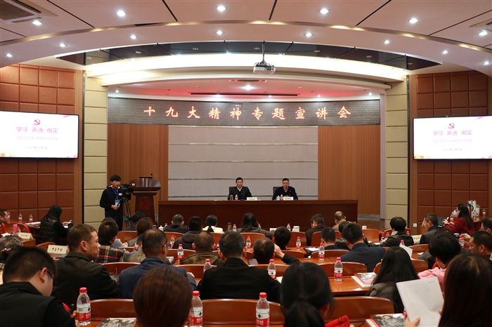 王靖高以“学懂、弄通、做实”为题,分“聚焦‘学懂’,准确领悟党的十九大精神”、“聚焦‘弄通’,深刻把握党的十九大精神”、“聚焦‘做实’,深入践行党的十九大精神”三个篇章,通过丰富的案例、深入浅出的分析,深度解读了十九大精神的内涵实质与重大意义,深刻阐述了学习领会十九大精神的方法和途径,科学谋划了我院进一步贯彻十九大精神的路径和布局。