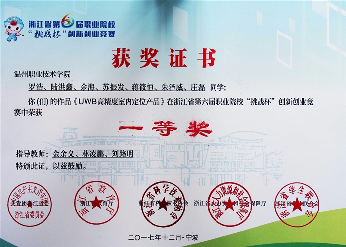 经过书面审查、专家评审和现场答辩等环节,由电气电子工程系金余义、林凌鹏、刘路明老师指导的,罗浩、陆洪鑫、余海等同学的作品《UWB 高精度室内定位产品》和工商管理系陈舒、刘笑傲老师指导的,范振乾、王明刚、李扬帆、楼珍等同学的作品《一双鞋垫的创业梦—百年步云》获得一等奖;机械工程系林潘忠、邵志达、潘依新老师指导的,陈湘、林志超、吕妮娜、赵圣桐同学的作品《温州绿能环保科技有限公司》,电气电子工程系余胜东、马金玉老师指导的,孔高阳、陈其琪、戴彬炳、沈雪杰同学的作品《智能激光鞋革加工自动设备》,电气电子工程系张正老师指导的,张茜、王凌波、姚浩飞等同学的作品《产品 AR 展示平台》,时尚设计系章纬超 、团委徐蓉老师指导的,高悠倩、曾文妫、许必泼等同学的作品《私人定制? 原创空间》获得了二等奖。