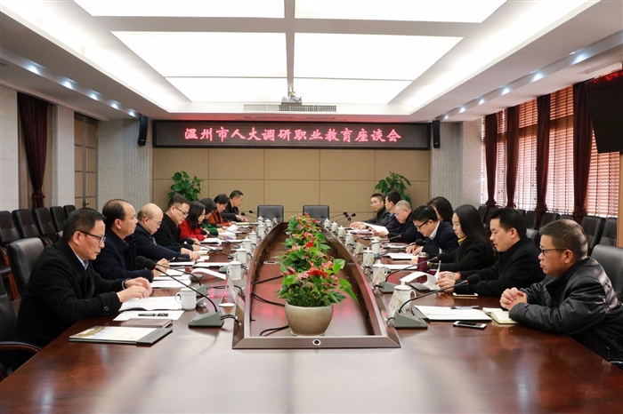 本网讯 12月26日下午,市人大调研职业教育座谈会在我院技术研创大楼三楼会议室举行。市人大常委会副主任徐育斐、市教育局副局长王素颖、我院副院长王向红,市人大常委会相关部分负责人、市教育局相关部门负责人、在温高职院校代表、在温中职学校代表出席座谈会。座谈会由市人大常委会委员、教科文卫工委主任丁福良主持。