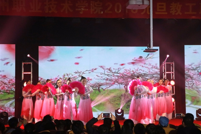 联欢会分“校园之爱”、“祖国之爱”、“人间之爱”和“尾声”四个篇章。婀娜多姿的舞蹈、刚柔并济的武术表演、激情澎湃的歌曲联唱、余音绕梁的歌舞剧将观众带入了爱的海洋,给观众们带去视觉、听觉的享受,最后的大合唱《相亲相爱一家人》更是将联欢会气氛推向了高潮。联欢会现场,台上精彩迭出,台下掌声不断,全院教工满怀激情,昂首阔步走向2018。