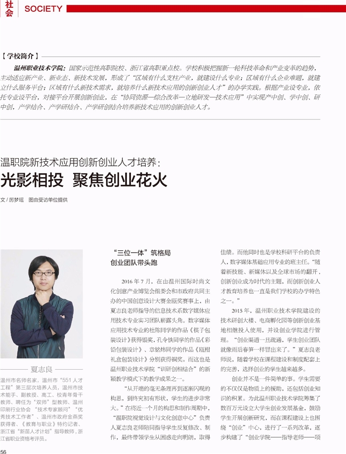 • 《温州人》温职院新技术应用创新创业人才培养:光影相投 聚焦创业花火