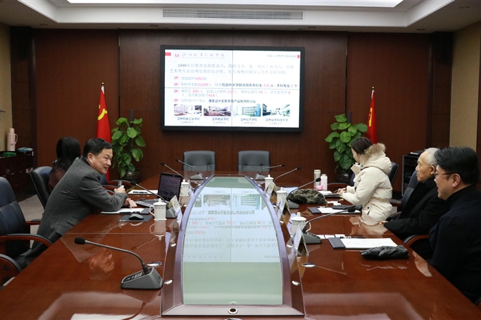 何忠全程陪同陈伯涛一行先后参观了我院实训基地、图书馆、技术研创大楼。双方于正德楼五楼会议室举行座谈,谢志远详细介绍了我院基本情况。陈伯涛对学院办学理念和人才培养模式给予高度评价。双方就特色立校、质量兴学、提升人才培养、科学研究、服务社会及培养高素质应用型人才等话题进行深入交流。