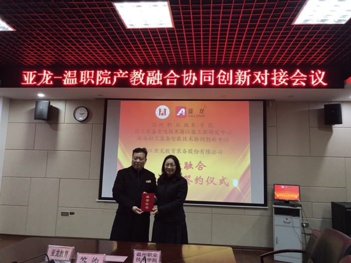 陈继权指出,双方在多年合作基础上全面实施产教融合校企合作战略,是深入贯彻十九大报告中关于深化产教融合、校企合作要求的具体实践,也是浙江亚龙发展的需要。