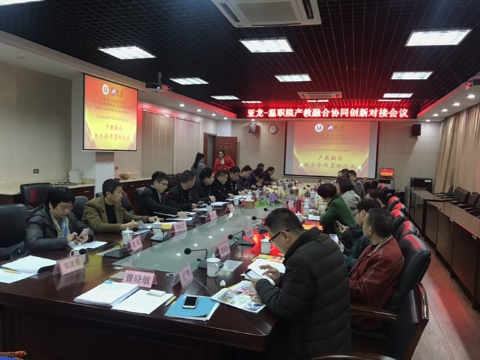 本网讯 2018年1月27日下午,浙江亚龙教育装备股份有限公司(以下简称:浙江亚龙)与我院全面实施产教融合战略协议签约仪式在浙江亚龙举行。我院副院长王向红,浙江亚龙董事长陈继权、总经理陈传周、副总经理陈昌安及各相关部门负责人,我院科技开发处、机械工程系、电气电子工程系、瑞安学院、成教学院、相关科研机构和专业的负责人参加仪式。