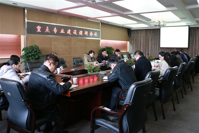 在重点专业建设调研会上,各系主任围绕本系重点专业建设情况进行汇报。教务处处长唐高平作学院“重点专业建设”汇报。