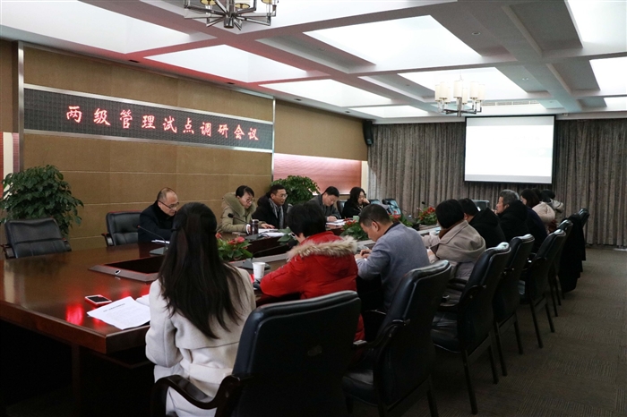 在两级管理试点调研会上,高职教育研究所所长金欢阳作《校院二级管理专项调研》报告。参会人员围绕“两级管理试点”展开讨论,并提出建设性意见和建议。