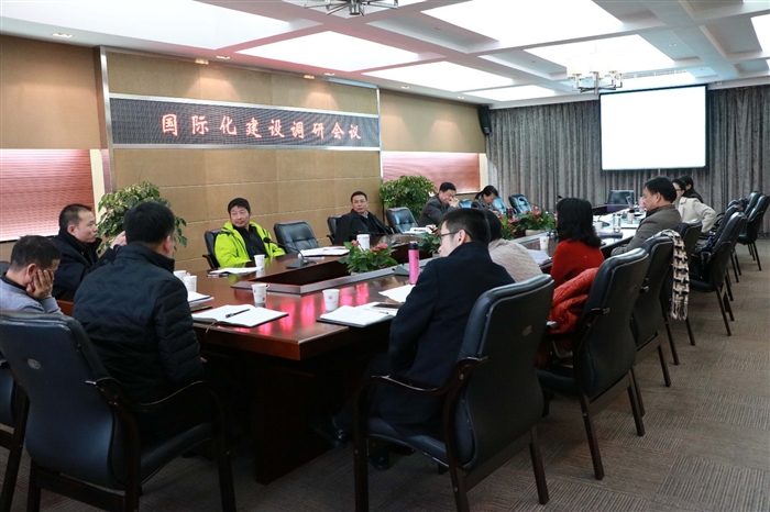 在国际化建设调研会上,外事办主任潘玲珍作“国际化建设项目”汇报。各参会人员就“国际化建设”展开讨论与交流,并提出意见和建议。