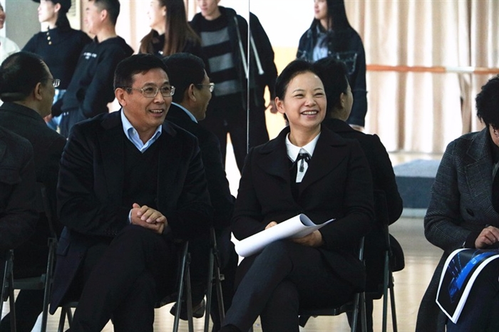 在我院力行楼三楼T台教室,胡剑谨全程观看了由我院推送的开幕式T台走秀节目彩排,并听取了相关工作汇报。胡剑谨肯定了我院文博会各项参会准备工作,并就具体工作进行了指导部署。