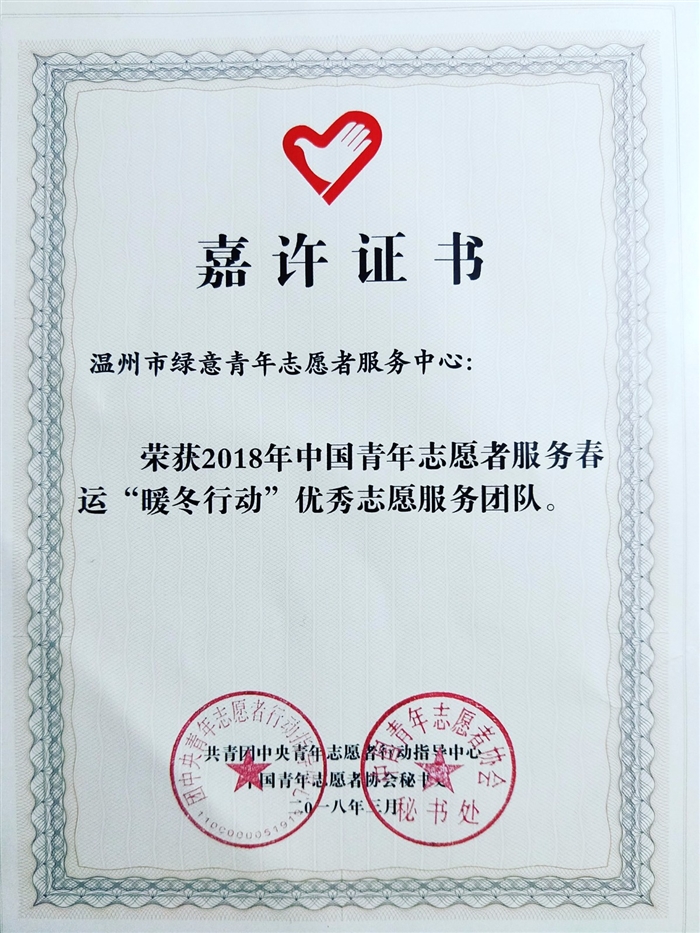 (建工系通讯员:包邦胜)近日,共青团中央青年志愿者工作部、中国青年志愿者协会公布了2018年中国青年志愿者服务春运“暖冬行动”优秀志愿服务团队评选结果,我院建筑工程系师生共创的绿意青年志愿者服务中心名列其中。本次共从全国评选出100名优秀志愿者和100名优秀志愿服务团队。