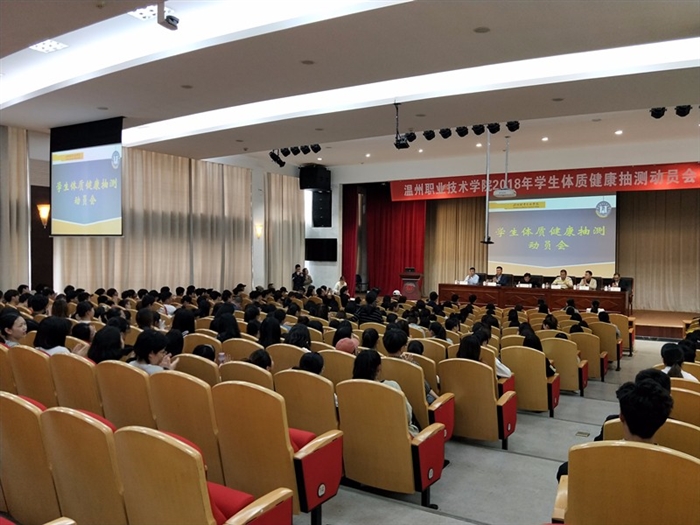 (公共教学部通讯员 林蒋叶)4月11日中午,我院2018年省高校学生体质健康抽测动员大会在明德楼树人堂举行。学院党委副书记夏晓军,学生处、教务处、信息技术系、人文传播系、公共教学部等相关处室和系部负责人,全体体育教师以及抽测学生参加会议。会议由公共教学部主任赵岳峰主持。