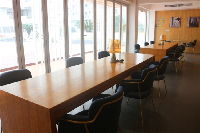 温职院学生处工作人员介绍,阳光书房有150多平米,带300多平米阳光露台,分为北馆和南馆,采用全景落地玻璃窗,飘窗式的书桌、通透的空间设计。书房目前共藏书500册,北馆以世界文学著作为主,南馆以中国文学为主,图书资源与学校图书馆共享,会定期进行更新。