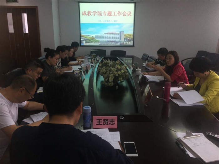 (成教学院通讯员:曹佳佳)2018年4月24日上午,学院于成教学院217会议室召开成教学院专题工作会议,学院副院长王向红,学院成教学院院长李小娟、党总支副书记梅碎彬、相关科室负责人参加会议。