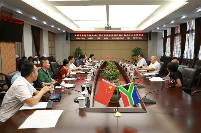 本网讯 7月13日下午,南非高教部能源与水利培训署署长Errol Randall Gradwell、管理委员会成员Tshimane Simon Montoedi ,中国文化和国际教育交流中心主任陆志雷来访我院。我院党委书记王靖高,副院长何忠、王志梅,相关部门负责人热情地接待了来访客人。