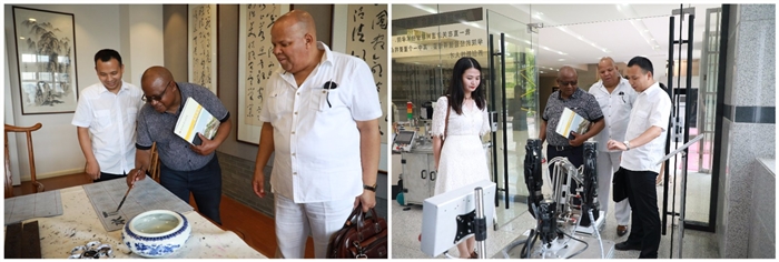 代表团先后参观了学院实训中心、图书馆和技术研创大楼、学生事务中心,对学院办学实力给予了高度评价。双方在技术研创大楼三楼会议室举行座谈会,南非全体大三留学生参加了座谈会。