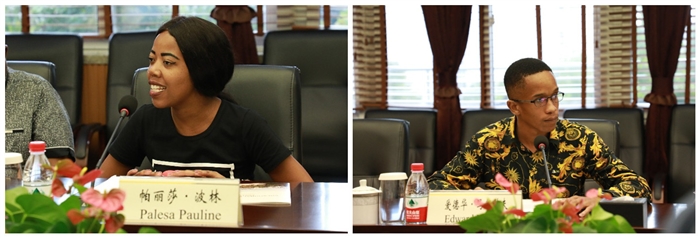 南非大三留学代表先后发言。他们表示,学习收获满满,未来要将学到的技术带回南非,促进当地技术发展。