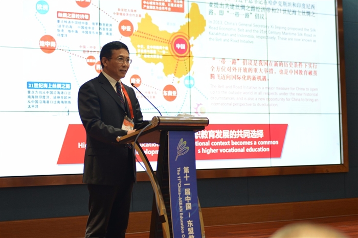 杨志宏作总结发言,他表示,本次洽谈会的目标是通过境外办学,让中国高职教育课程体系和中国企业的产品和技术走出去,推动建立我国与东盟各国教育合作的长效机制,进一步助推“一带一路”建设。
