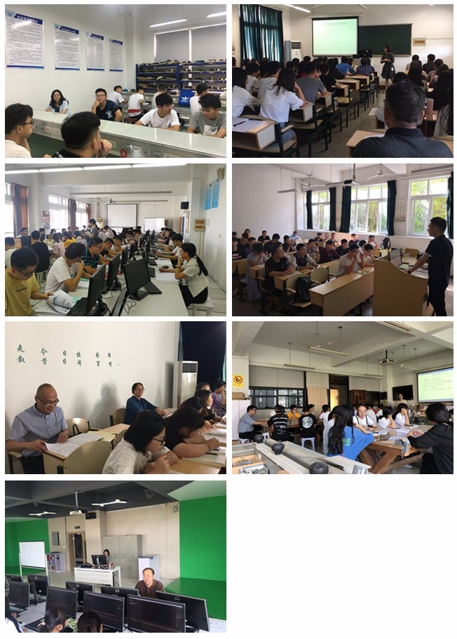 学院副院长王向红、副院长何忠、副院长王志梅、纪委书记徐利群、党委委员蔡后界、党委委员季凌斌、党委委员施凯分别深入各系课堂,听取了电器产品的结构与装配、基础英语翻译、ERP系统二次开发项目实践、电气设备、会计专题、家具表面装饰、特效设计等课程。