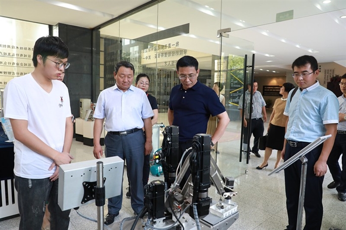 王靖高全程陪同田云见一行参观了我院党建基地、技术研创大楼,简要介绍了我院党建建设情况、办学概况。参观调研中,田云见高度评价我院党建水平和办学实力。