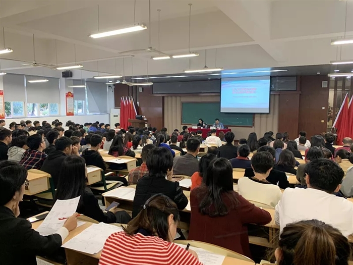 下午,王向红走进研创大楼5楼会议室,以“大学生科技创新”为主题与同学们进行互动探讨,之后又来到好学楼101教室,向信息技术系全体党员、入党积极分子、业余党校成员宣传全国教育大会精神。教室里座无虚席,同学们热情高涨,不时响起热烈的掌声。