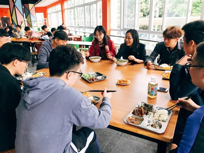 午饭时间11点,王向红与同学们一起来到中快餐厅,与同学们一边用餐一边继续交流,并聆听了同学们对食堂卫生、饭菜价格以及服务态度的意见和建议。