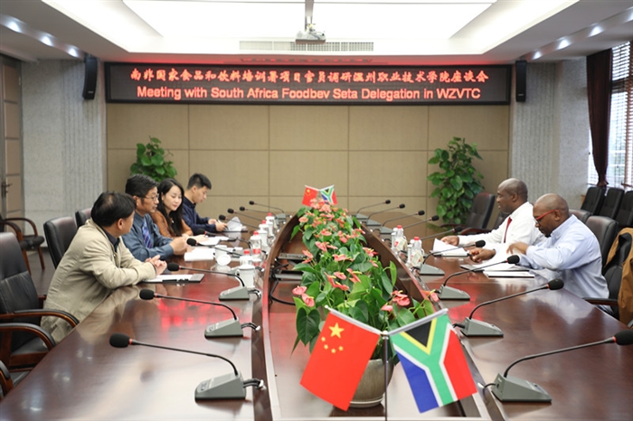 10月25日上午,南非高教部食品和饮料培训署高级项目官员霍萨·克里斯托弗(Khoza Christopher)一行来访我院调研南非留学生项目,副院长何忠及相关部门负责人热情接待了来访客人。