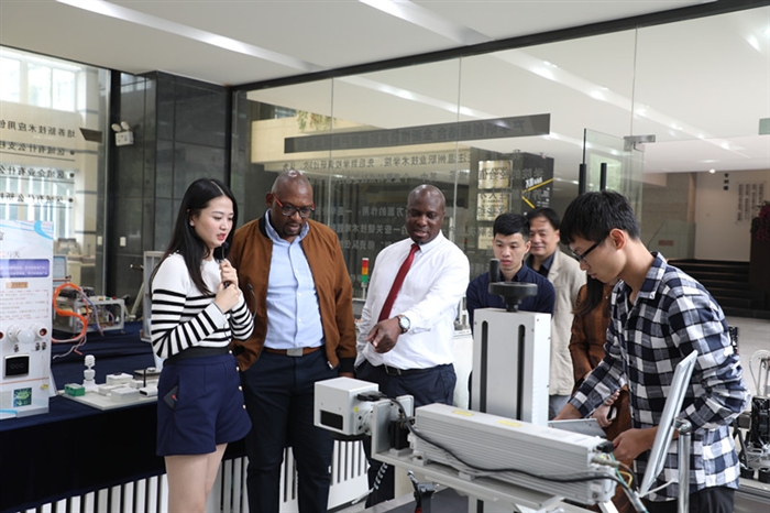 霍萨·克里斯托弗一行先后参观了实训基地、图书馆、技术研创基地、学生事务中心、留学生寝室和食堂,对我院办学实力和人才培养模式给予了高度评价。双方在技术研创中心三楼会议室召开座谈会。