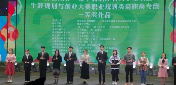 由马德龙、许丹超、金文奖老师指导,文秘1623班范世方同学的“秘苦勤学 书写人生”和由赵生玉、卢明真老师指导,环艺1602班王璐同学的“乡情?乡旅?乡韵—创意乡旅设计师”在A类(职业规划类)项目中脱颖而出,揽下一等奖,同时荣获“2018年度浙江省最佳职业生涯规划之星”称号。工商管理系吴欢乐同学的团队项目——“JUNK+物联网垃圾分类回收系统”、信息技术系倪佳豪同学的团队项目——“悦”动数据——智慧招生管理平台”荣获B类(创新创意类)二等奖。