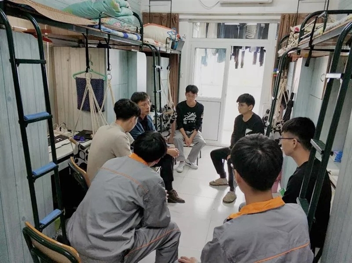 下午13:45,夏晓军走进旭阳公寓414寝室,亲切地和同学们拉起家常,询问生活、学习等方面的情况,并分享了自己学生时代的故事。夏晓军勉励同学们在大学期间养成良好习惯,多读书、多学习、勤于锻炼身体。