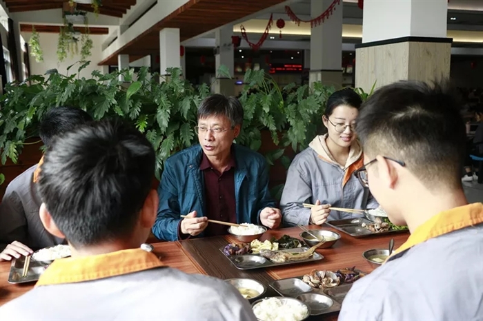 中午, 夏晓军与同学们一起来到朝阳餐厅,与同学们一边用餐一边交流,从日常生活琐事到职业生涯规划。夏书记表示,“学校很关心同学们的生活学习情况,以后会开展更多贴近学生的活动,了解同学们的真实需求,设身处地的解决实际困难,为大家营造更加良好的学习和生活环境。”