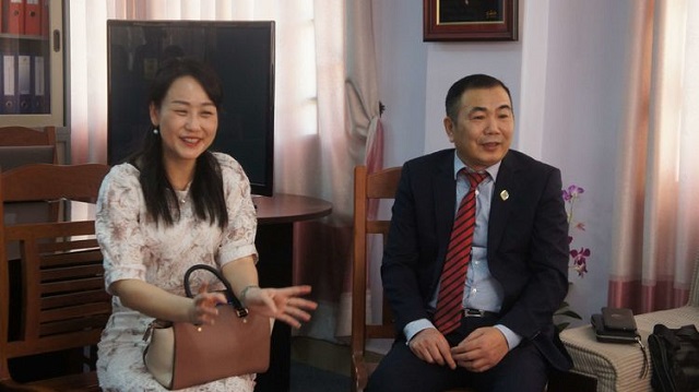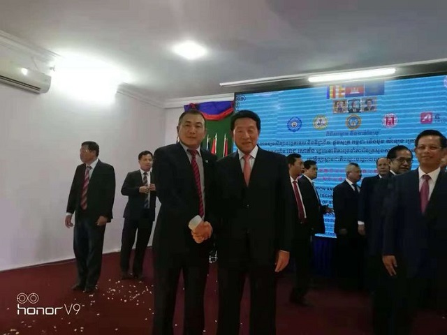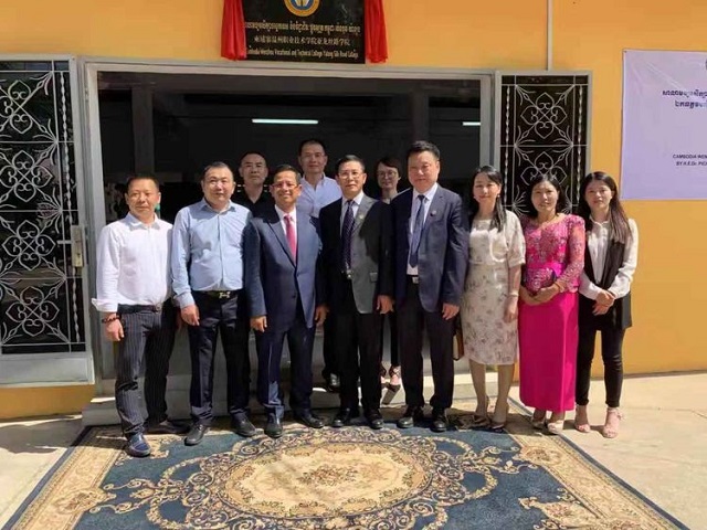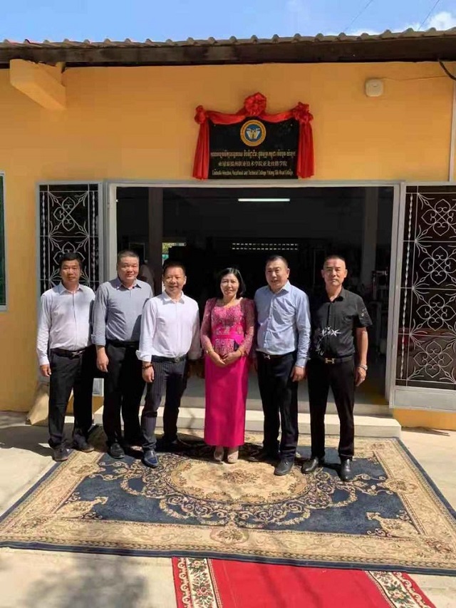 柬埔寨温州商会常务副会长叶胜造、 李成建及理事会成员南巨英、 潘丐攀、 周建光、 王学巧及中柬英翻译容和女士也应邀出席丝路学院剪彩仪式和开学典礼。