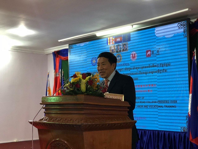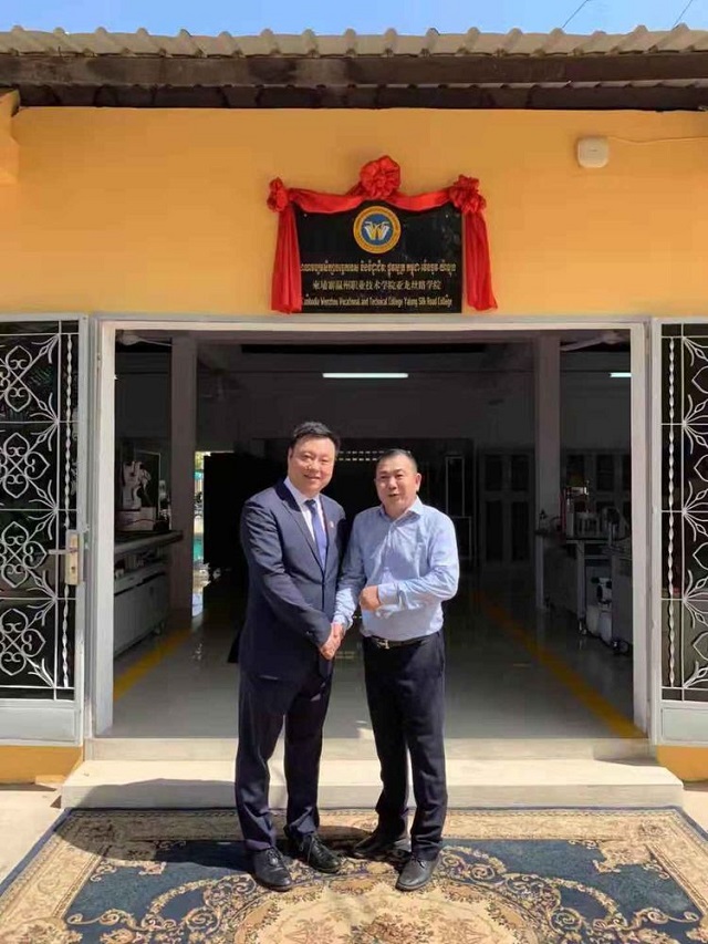 亚龙丝路学院是温州职业技术学院与亚龙智能装备集团共同合作,在海外建立的首个分校,也是中国第一所伴随中资企业“走出去”在柬埔寨建立的海外丝路学院。据王靖高书记介绍:从今年3月份我们与柬埔寨劳工部达成初步合作办学意向,5月份与柬埔寨国家技术培训学院签署共建丝路学院战略合作协议,7月份丝路学院正式揭牌,到今天隆重举行开学典礼,丝路学院经历了整整10个月的“孕育”,而今诞生在柬埔寨的大地上,开始了伟大的使命。今年适逢中柬建交60周年,丝路学院的成立具有特殊的意义,必将有力推进中柬两国教育和文化的交流,有力推进中柬国际化产教深度融合、服务国际产能合作,成为中柬职业教育合作的典范和标杆,成为中柬两国人民世代友好的新桥梁和新纽带。