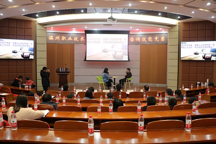 本网讯(招生就业处通讯员 郑晓丹)为提升教师招生宣传队伍的职业技能和工作水平,普及招生咨询技巧,进一步推进全员招生。12月19日下午,温州职业技术学院2018年招生咨询技能竞赛在正德楼罗山厅举行。学院副院长王志梅,各系、二级学院党总支书记、副书记、学工办主任、招生就业辅导员、专业教师代表到场观摩学习。