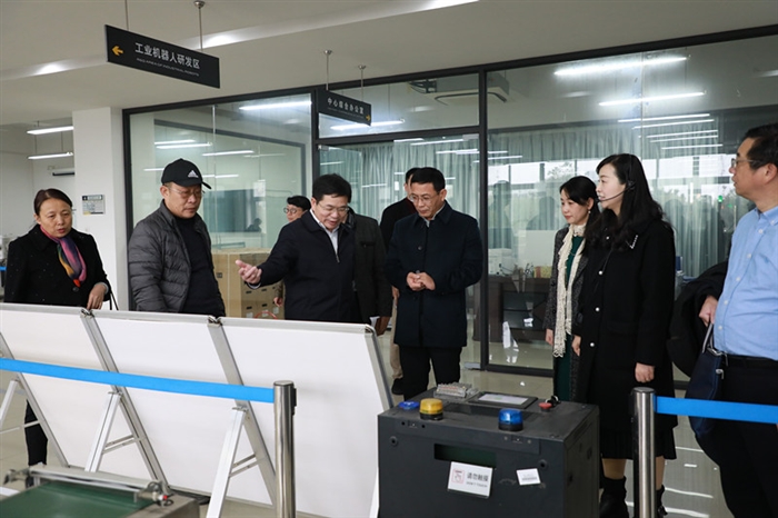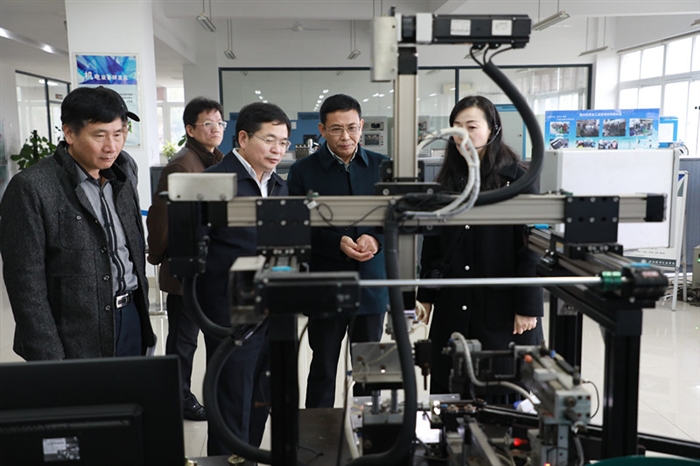 林子波一行参观了我院的设计创意学院党建基地,实训基地,图书馆,技术研创大楼等。王靖高简要介绍了我院办学情况,双方于技术研创大楼三楼会议室进行座谈交流,就高水平专业建设、校企合作、学生管理、创新创业教育改革、绩效管理以及师资队伍建设等方面的经验与做法展开交流。