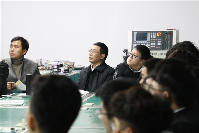上课铃声未响起,王靖高早早走进了笃行楼203数控维修实训室,与机制自动化1701班同学一起聆听了机械工程系教师王锋的单片机技术应用课。王靖高仔细聆听教师讲课,认真记录听课内容,并在课后与任课老师交流,就如何提高教学质量提出了建设性意见。